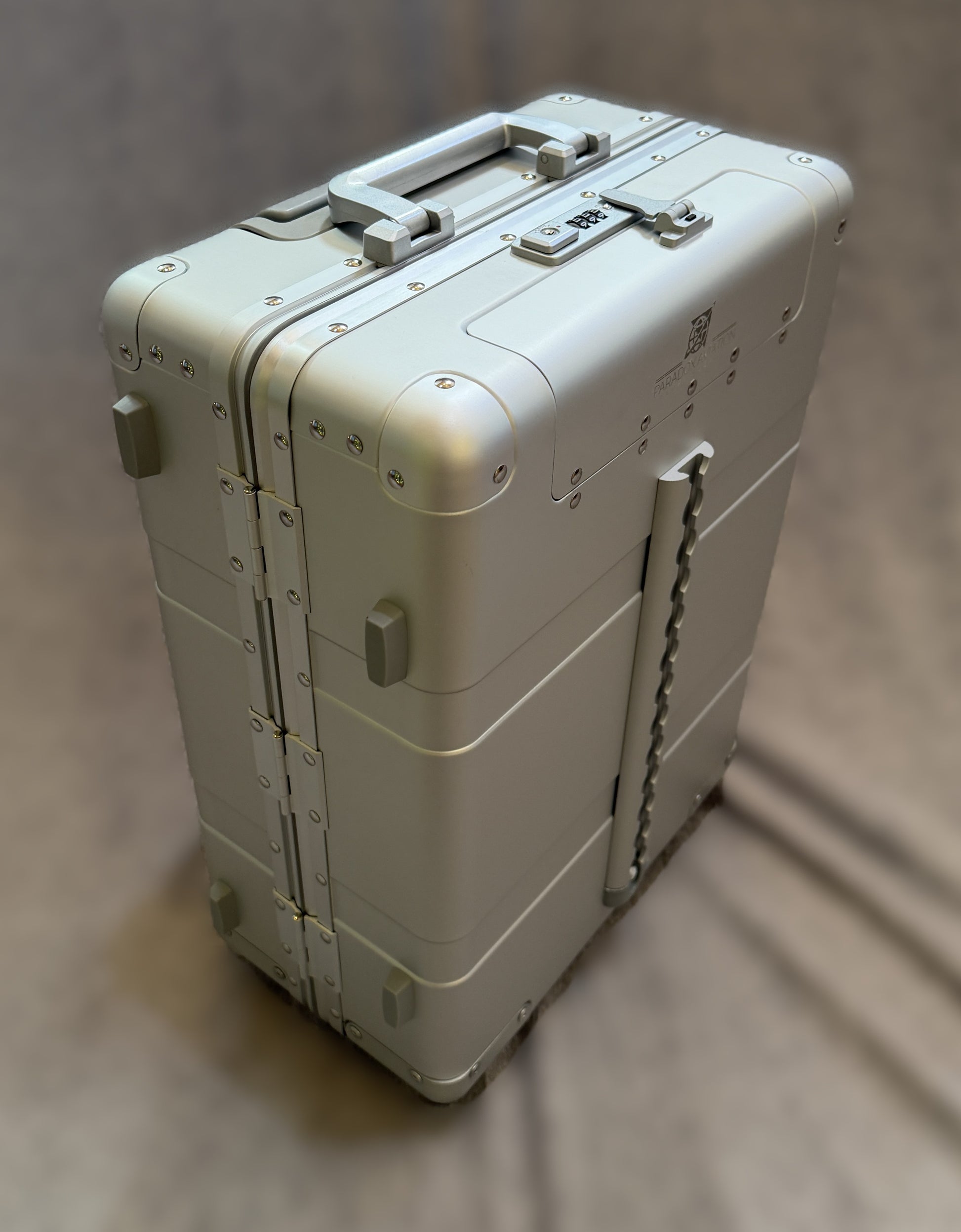 Resolvimos estos requisitos con algo que normalmente sólo la élite de Hollywood o los magnates de Wall Street llevarían: ¡un estuche lateral rígido de aluminio! No más tela de nailon que se rasgue y deteriore. No más bases de fundición pesadas ni bolsas de marco que se deformen. No más bolsillos no seguros y de fácil acceso.