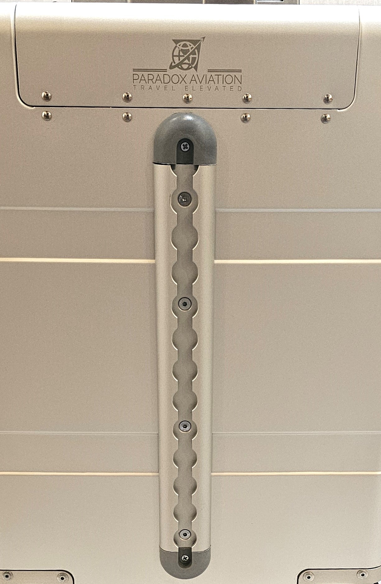 Sin embargo, los pilotos y las tripulaciones de vuelo a menudo necesitan un acceso rápido a elementos como chalecos de seguridad, linternas, gorros, guantes o una botella de agua para pasar la noche. No olvidamos esta parte de nuestras necesidades y agregamos un panel de acceso rápido en la parte superior exterior del gabinete. Este panel de acceso rápido está ubicado en la parte superior de la caja, ya que se encuentra en la rampa. Es un pestillo simple con bloqueo TSA para abrir y cerrar. Es lo suficientemente grande como para llevar los artículos necesarios en la rampa o una botella de agua rápida para pasar la noche. Está diseñado para mantener su contenido separado de los compartimentos principales de la caja, de modo que si camina bajo la lluvia o la nieve, su ropa seca durante la noche permanecerá seca y limpia. También dejamos este pequeño compartimento capaz de evaporar la humedad, por lo que si lleva un sombrero mojado. o una botella de agua, la humedad se evaporará.