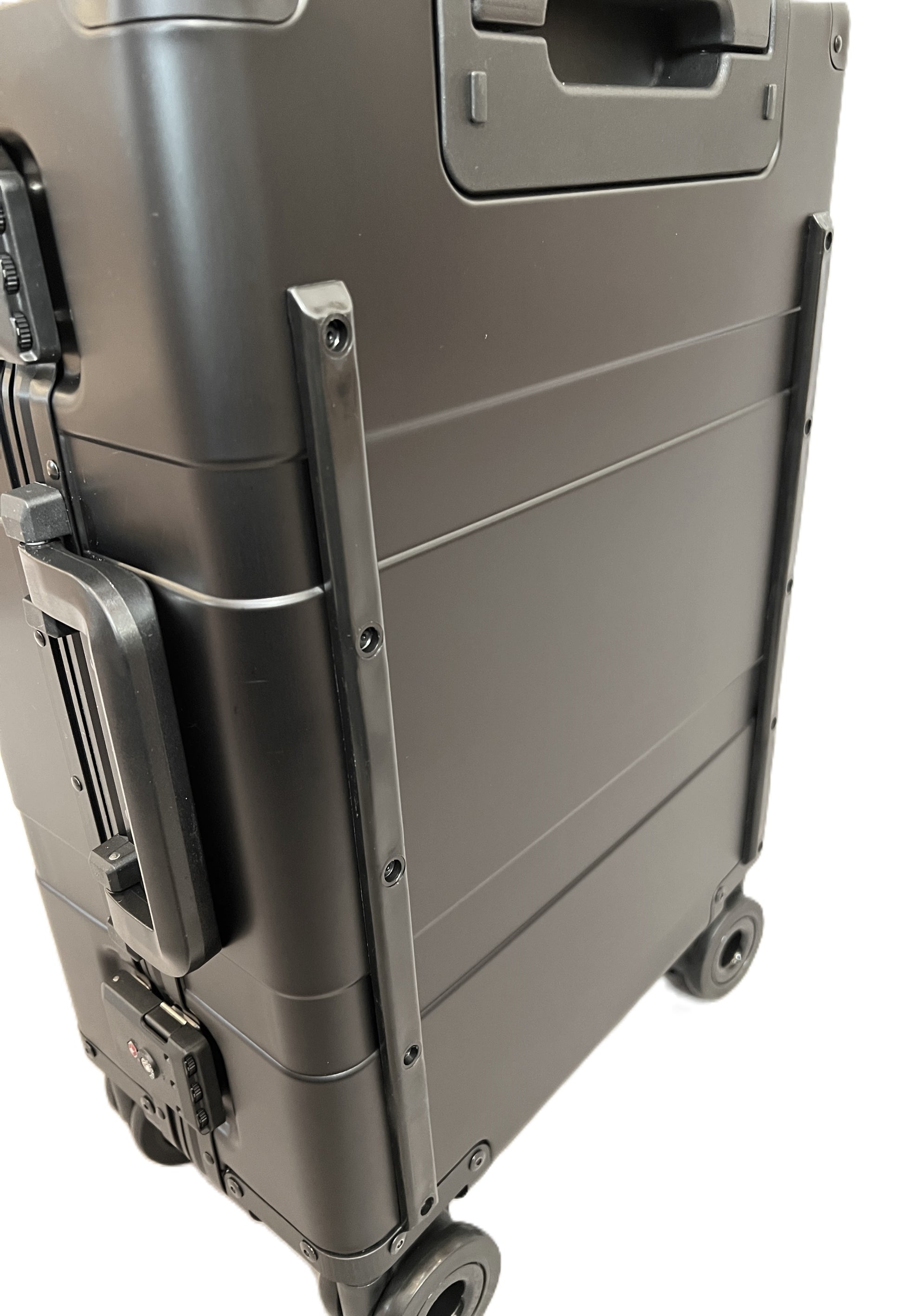 Resolvimos estos requisitos con algo que normalmente sólo la élite de Hollywood o los magnates de Wall Street llevarían: ¡un estuche lateral rígido de aluminio! No más tela de nailon que se rasgue y deteriore. No más bases de fundición pesadas ni bolsas de marco que se deformen. No más bolsillos no seguros y de fácil acceso.