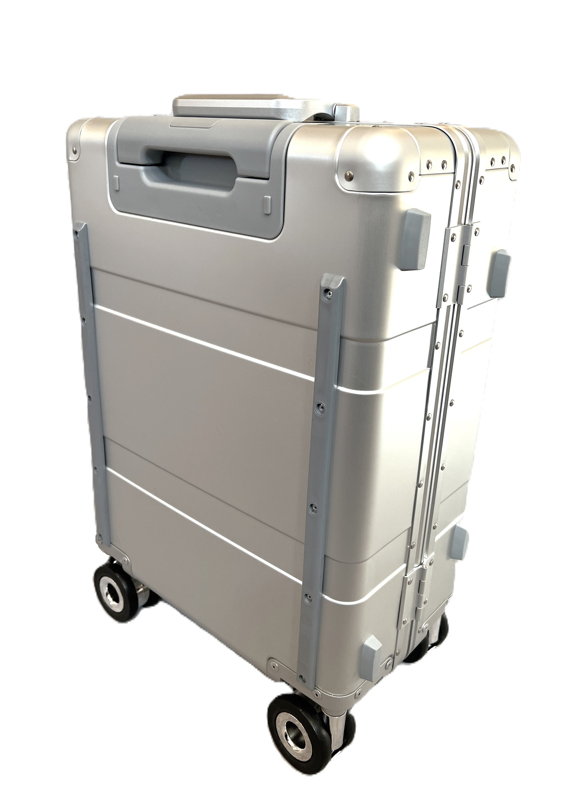 Resolvimos estos requisitos con algo que normalmente sólo la élite de Hollywood o los magnates de Wall Street llevarían: ¡un estuche lateral rígido de aluminio! No más tela de nailon que se rasgue y deteriore. No más bases de fundición pesadas ni bolsas de marco que se deformen. No más bolsillos no seguros y de fácil acceso.