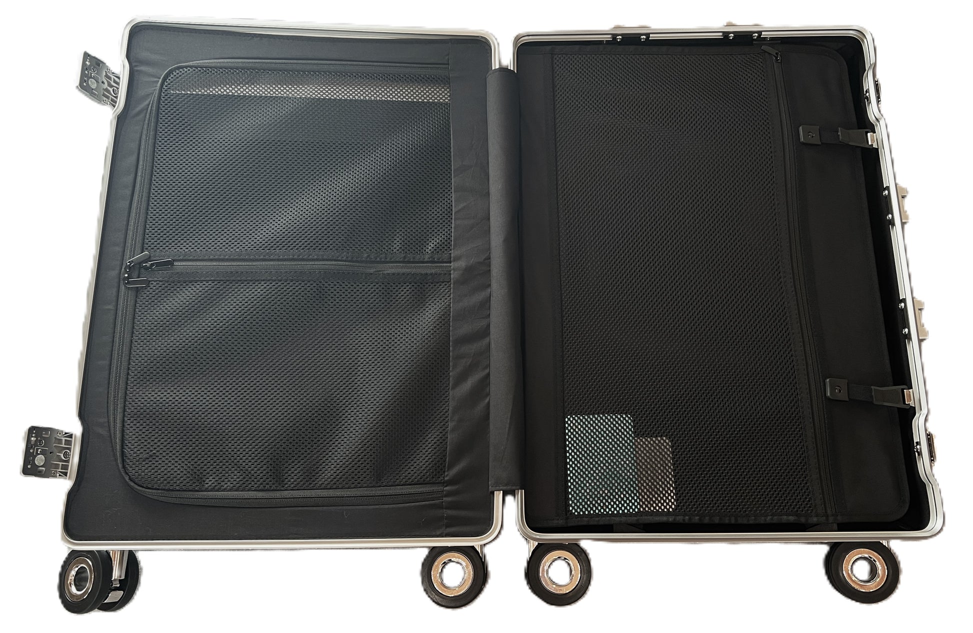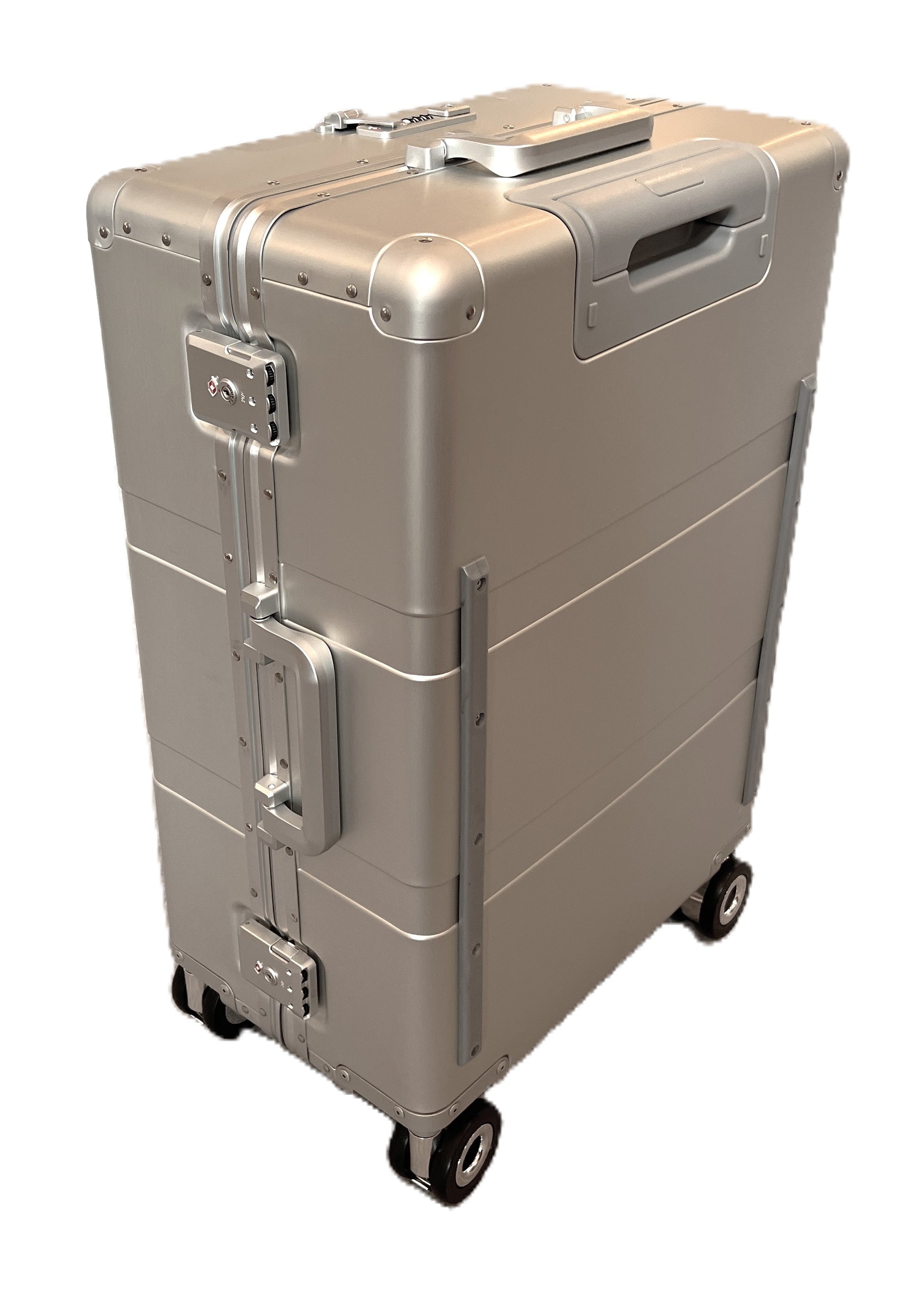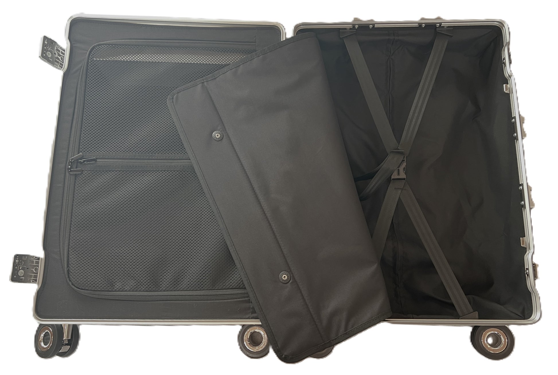 Resolvimos estos requisitos con algo que normalmente sólo la élite de Hollywood o los magnates de Wall Street llevarían: ¡un estuche lateral rígido de aluminio! No más tela de nailon que se rasgue y deteriore. No más bases de fundición pesadas ni bolsas de marco que se deformen. No más bolsillos no seguros y de fácil acceso.