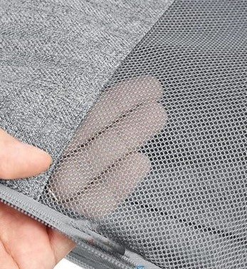 We designed these Paradox lightweight breathable packing cube kits to fit our roll aboards. These neutral gray herringbone fabric cubes have a breathable mesh section, dual zippers, and a simple and reliable compression zipper to help get the maximum packing space out of your luggage.