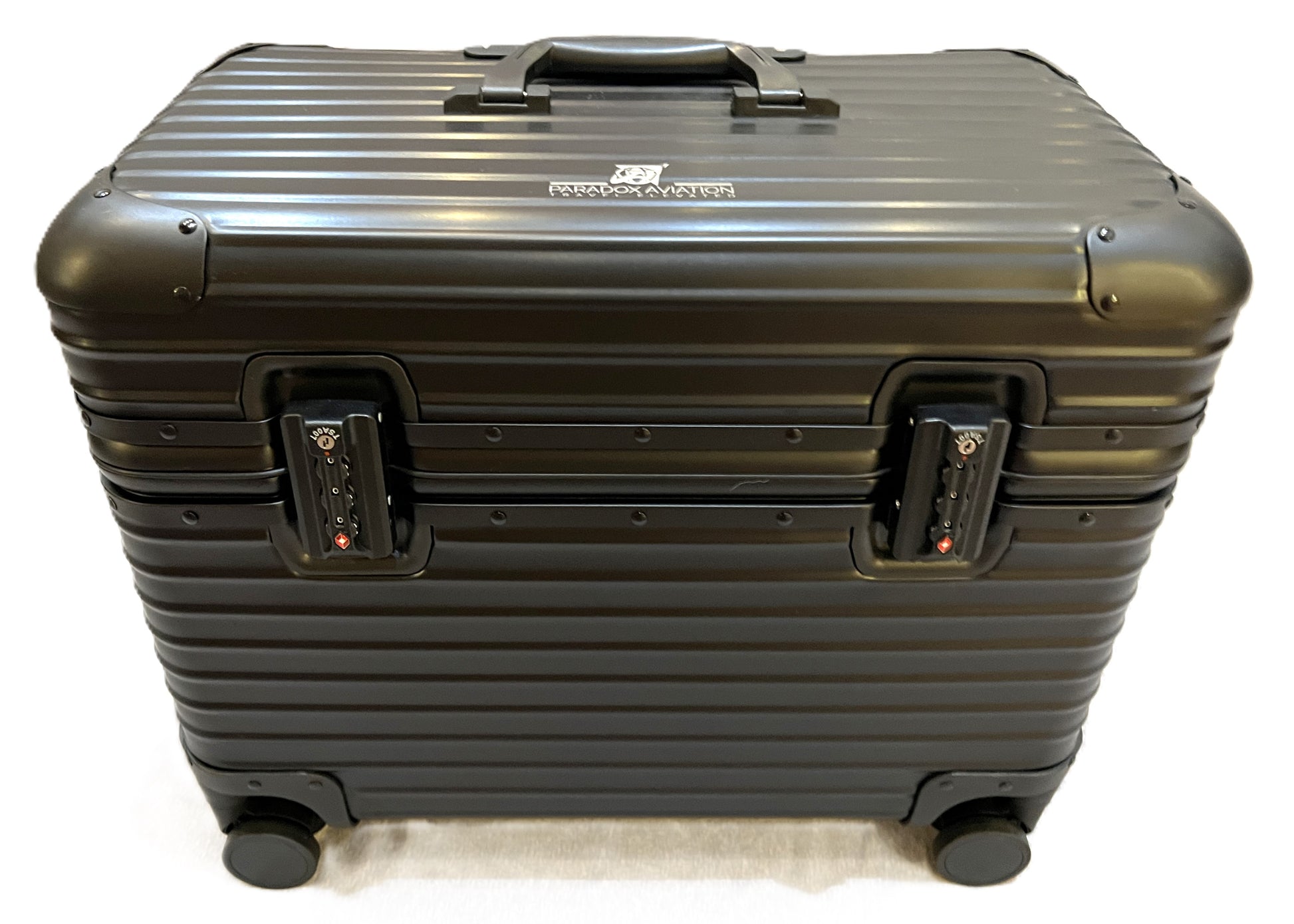 Optional mounting shoe versions are available. If you have one of our Professional Flight Crew roll aboard cases you can mount your Jetsetter using our mounting shoe version which allows it to slide down the cargo track making the two cases act as one. This provides a solid mount for your two cases. No hooks or precariously stacking one on top of the other. Simply choose your color and select the 'mounting shoe' version.